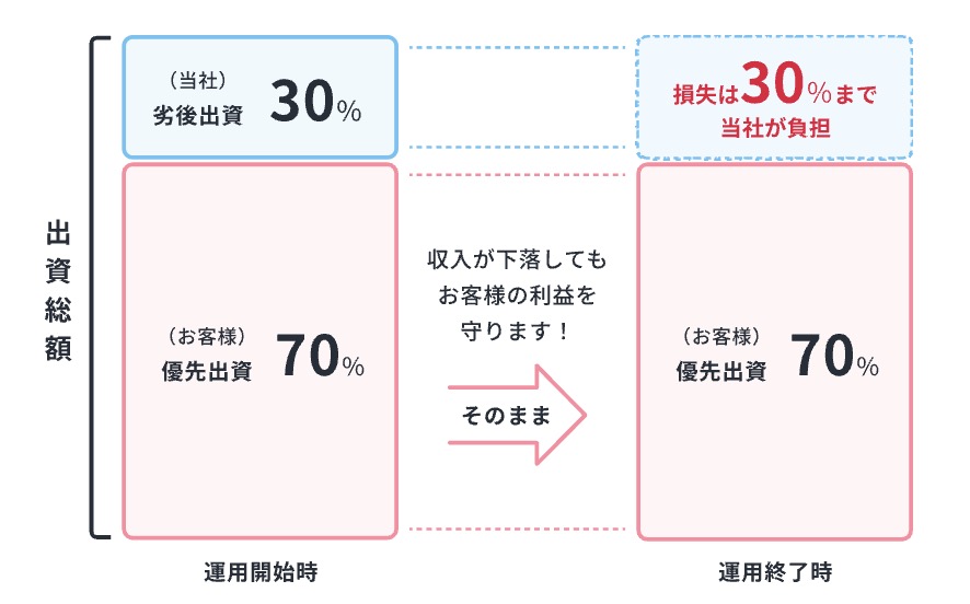 もし損失が出た場合、まず運営会社の出資分から損失を吸収する仕組みになってる。