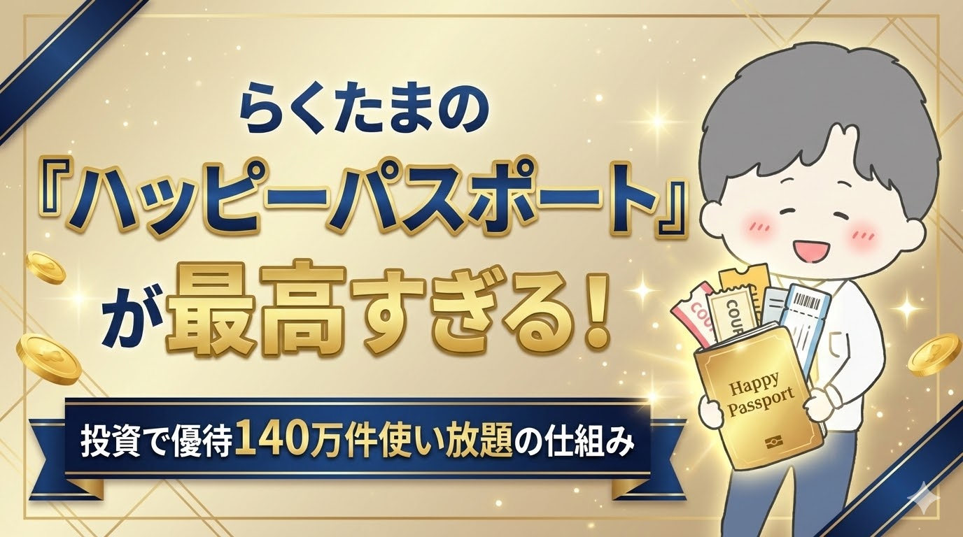 この記事では、らくたまの目玉特典「ハッピーパスポート」の魅力から、サービスの仕組み、始め方まで、まるっと解説していくね。